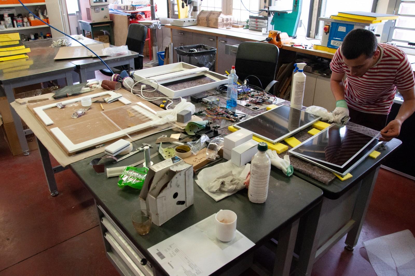 ConfidentialCommunication support in the form of a large book integrating two screens.